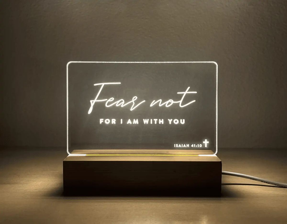 Find peace with a Fear Not For I Am With You LED stand. An inspirational Bible verse light perfect for faith, comfort, and spiritual décor.