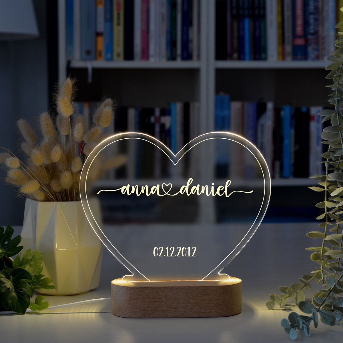 Celebrate love with a heart shaped couple’s names LED stand. A glowing romantic gift perfect for anniversaries, weddings, and special memories.